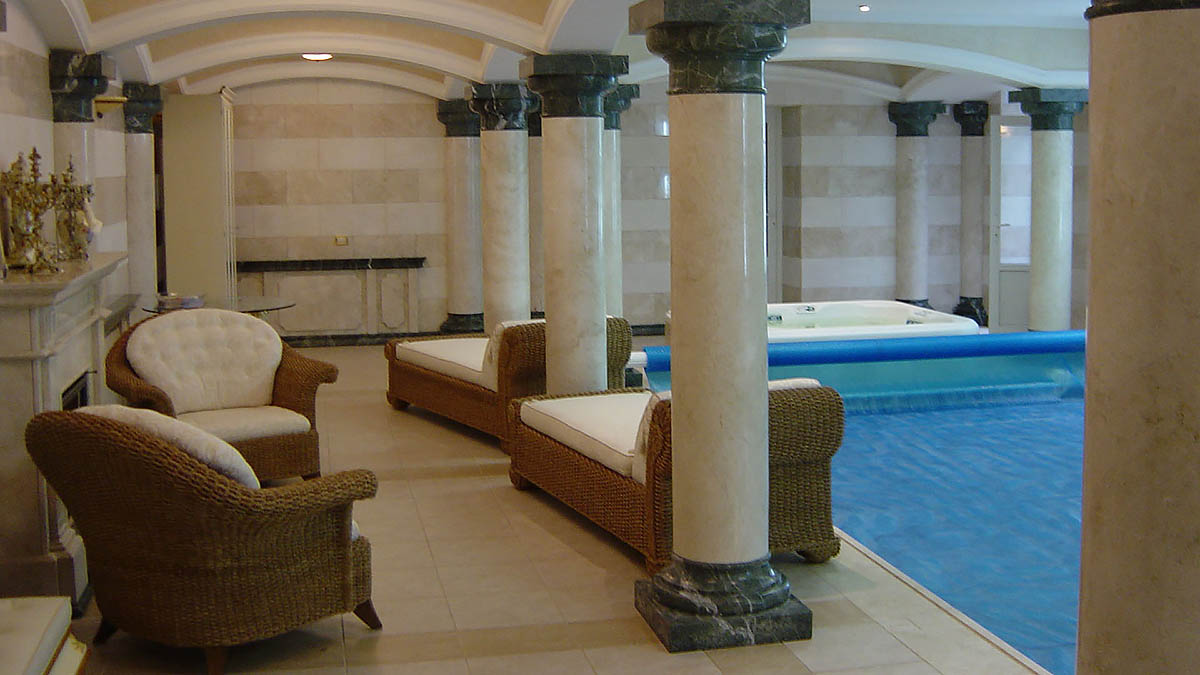 Концепт- проект был разработан итальянским архитектором. Нашими архитекторами осуществлена доработка и деталировка чертежей на основании заданного концепта. Для этого проекта был привезен камень из Италии, Испании, Турции, Индии, Китая, а так же из России. Проект включал в себя фасады, благоустройство, а также изысканные интерьеры — стены, полы, профильные резные камины, колонны, лестничные пролеты. Также использовалась мраморная мозаика и кварцевая плитка ручной росписи Изник Чини. Весь процесс производства, начиная с отбора материалов на карьерах, изготовления всех видов изделий на нашем производстве и заканчивая монтажными работами, выполнены собственными силами под строжайшим контролем экспертов отдела контроля качества. Общий объем выполненных работ в камне составил около 4500 кв.м.