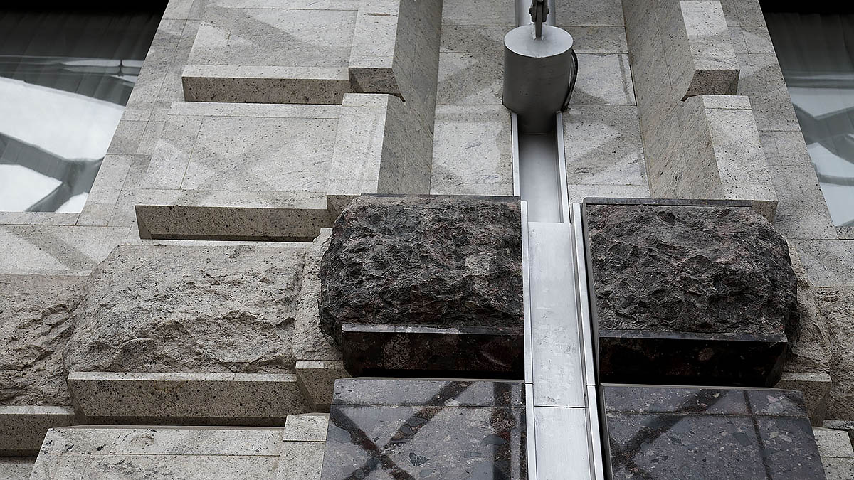 Каждый гранитный блок был тщательно отобран на карьерах и доставлен на фабрики. Каждый шаг производства строго контролировался нашими инспекторами по качеству. И только после утверждения макетов раскладки камня на фасадах партия готовилась к отгрузке на стройплощадку. Монтаж на объекте производился на подконструкцию НФС, разработанную нашими специалистами.